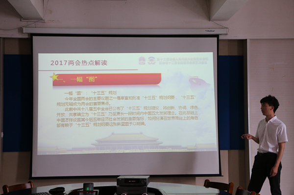 毕业生党员张博丞结合习总书记年轻时在梁家河村插队的经历,以“青年在面对挫折时应该怎么办——从习近平年轻时的经历谈起”为主题讲党课,号召大家在年轻时候多吃苦多读书多锻炼,实现自身的价值。