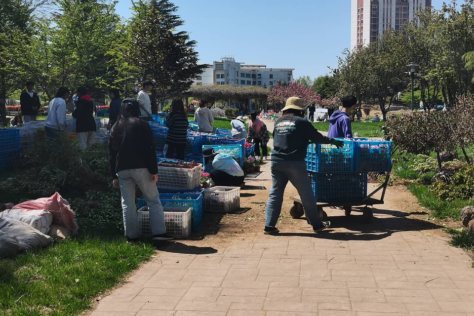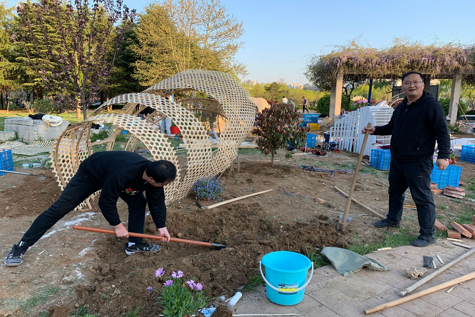 场地布置开始前,公司挑选了部分同学的优秀作品,对其作品的设计不断推敲并进行材料的准备,力争将其最好的一面展现在大家面前。活动进行时,公司的展园制作小组成员为展现出自己作品最好的效果,积极投入创作,义工同学们也积极参与,相互配合,帮助同学们完成构筑物的搭建和各种花卉的种植,校园里洋溢着花朵的芳香。公司教师也与员工共同参与了此次活动,活动过程中,师生合作密切,认真交流活动方案,致力于打造精美展园,期间,公司老师们也纷纷也加入到展园的布置行列中,与同学们一同完成展园的搭建,师生共同努力,形成了一道靓丽的风景线。