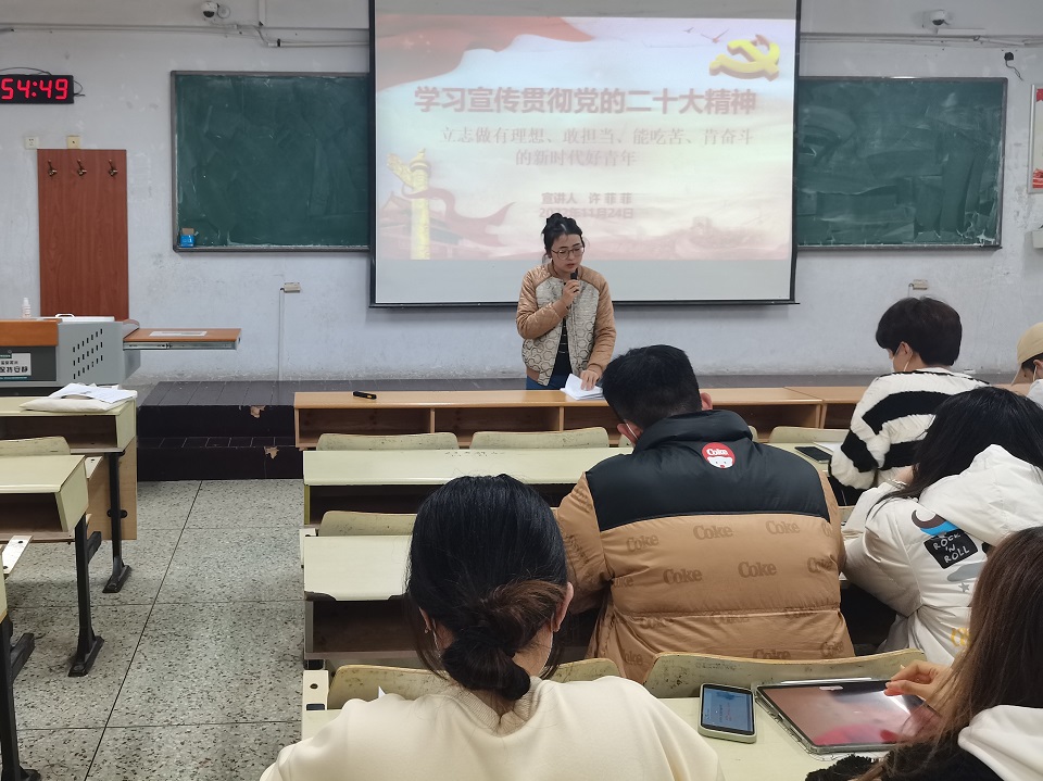 11月24日,ladbrokes立博在教学楼开展学习宣传贯彻党的二十大精神专题宣讲会。团委书记许菲菲面向公司2022届员工工作团队全体成员宣讲党的二十大精神。