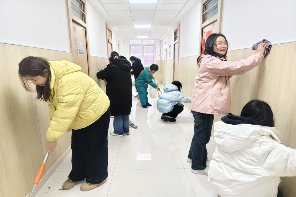 活动过程中,员工干部在辅导员的指导下合理分工,同公寓保洁人员迅速投入清扫工作。员工们认真捡拾宿舍楼道中的垃圾纸屑,擦拭地面,清理宿舍楼下的积水,确保公共区域干净整洁,为员工的日常通行提供便利。经过大家的共同努力,宿舍楼环境焕然一新。
