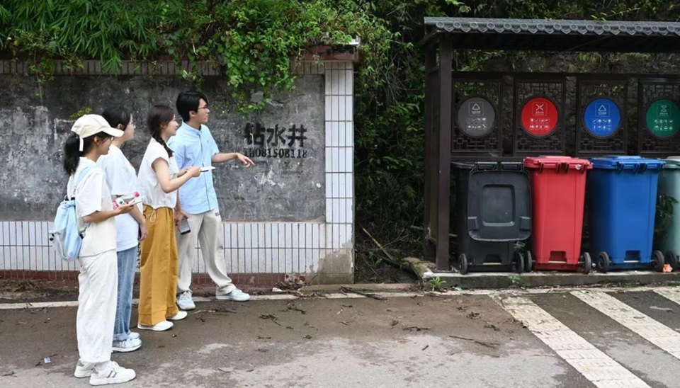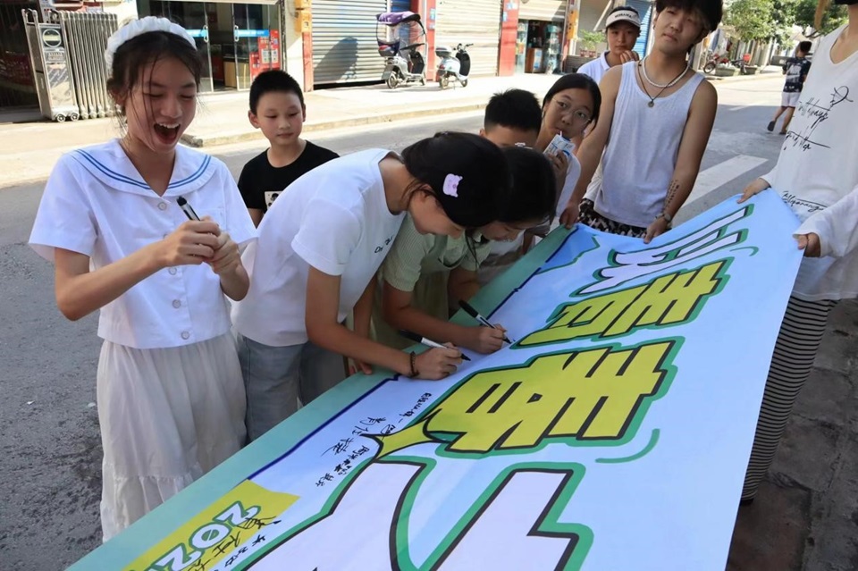 为深化乡亲们对“绿水青山就是金山银山”的理解,提升当地的文化亲和力,实践团成员在社区街道、乡村小路等地开展垃圾分类宣传活动,并规划设计垃圾分类点,宣讲绿色出行、低碳环保理念,谱写新时代生态文明新篇章。