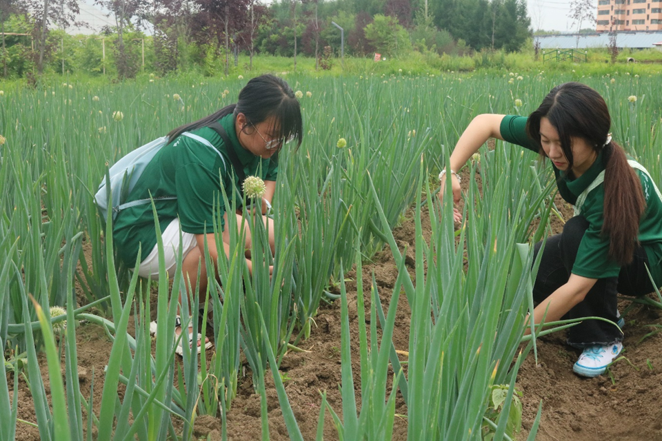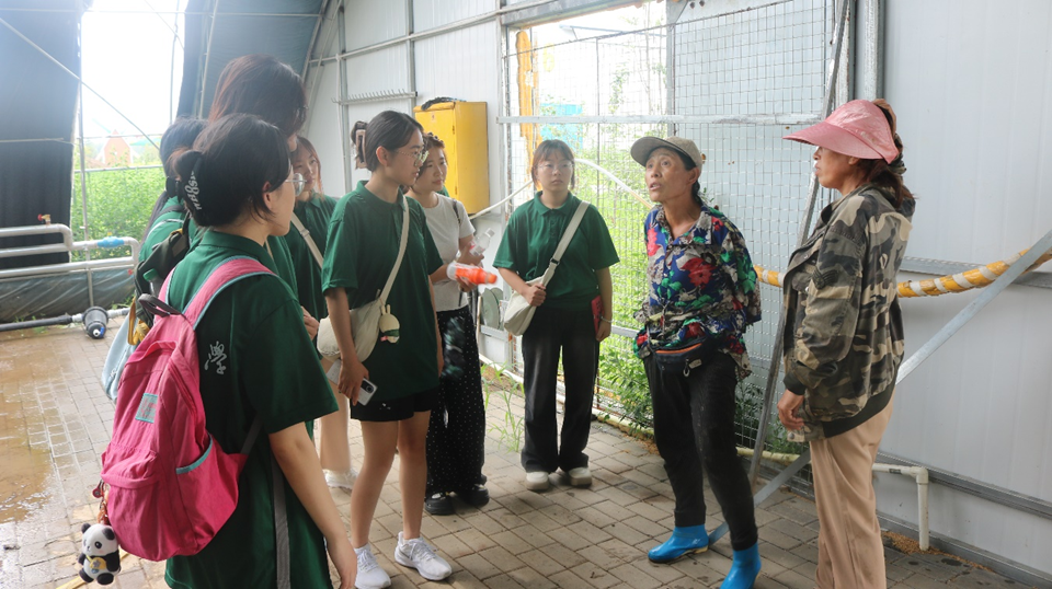 在农业观光园内,实践团成员们深入温室大棚,近距离观察学习了错季种植苹果、葡萄、豆荚、黄瓜等果蔬的生长奥秘,将课堂所学的无土栽培、病虫害防治及大棚运营管理等理论知识付诸实践。此外,他们还探访了农耕文化展示区,通过详实的史料与生动的展示,全面了解了鹤岗农耕文化的悠久历史、发展脉络及深刻变迁,深切感受到这片土地上农耕文明的深厚底蕴。为更直观地体验农耕实践,成员们走出展厅,踏入田间地头,亲眼见证了农民们运用自然条件与世代相传的智慧进行耕作的场景。他们亲手参与了大葱的收割与豆荚的采摘,不仅亲身体验了农事活动的艰辛与乐趣,更对鹤岗市从古代农耕文明向现代农业转型的历程有了更为深刻的认识,领略了中国传统农耕文化的辉煌成就。