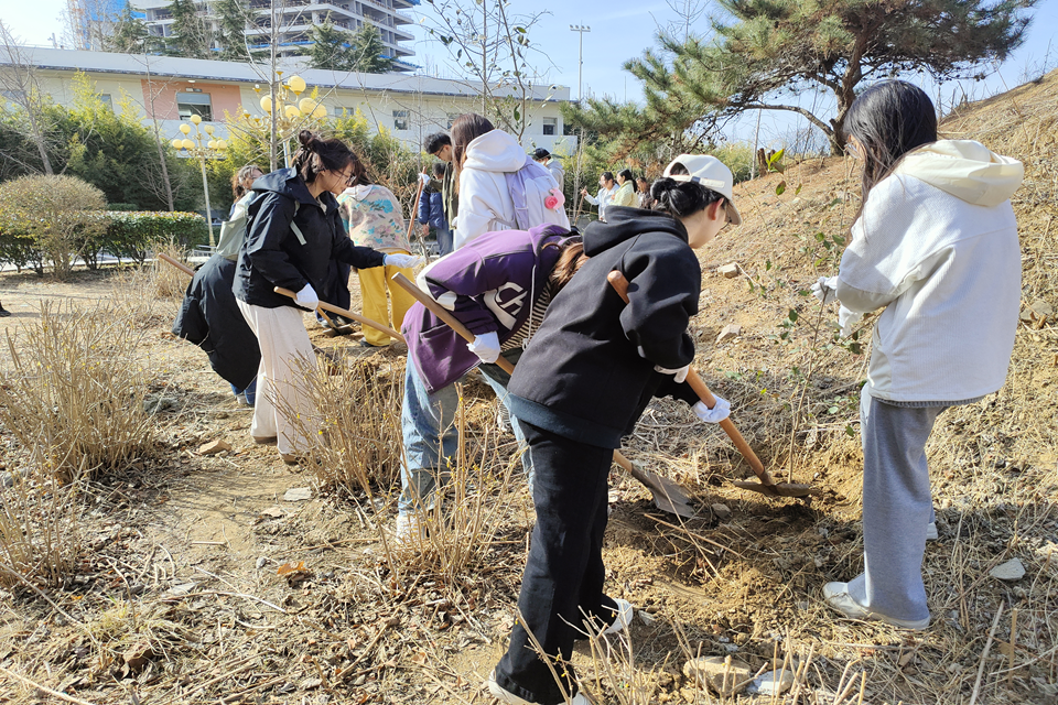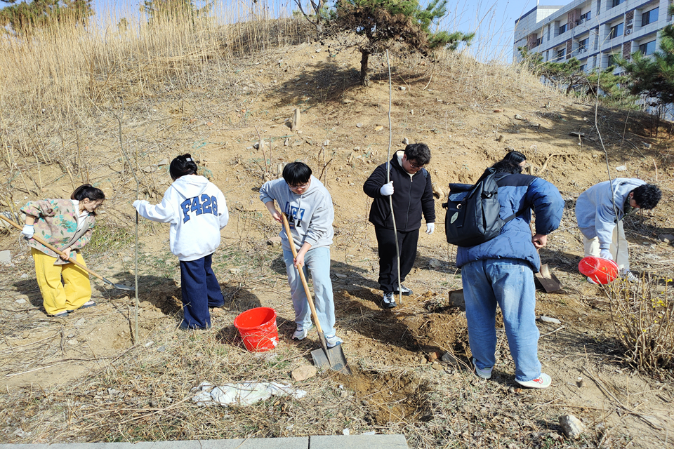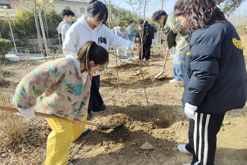 活动现场,同学们三人一组,分工协作。在后勤保障处绿化技术人员的指导下,大家有序完成挖坑、扶苗、填土、踩实、浇水等环节,严谨把控栽植质量。经过劳作,一株株苗木在春风中“扎根落户”,成为校园生态的新成员。植树活动将劳动实践与专业教育相结合,既让同学们在动手过程中深化对植物栽培技术的理解,也增强了团队协作意识。亲手栽种树苗的经历让同学们更直观地体会到园林绿化工作的不易,也深化了对专业知识的理解。国际教育公司师生的加入,更让活动增添了跨文化交流的特色,中外学子在劳动