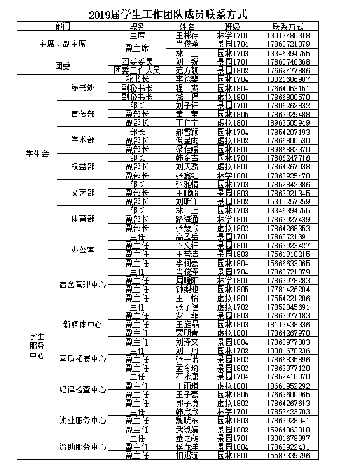 2018届员工会、社团联合会成员名单