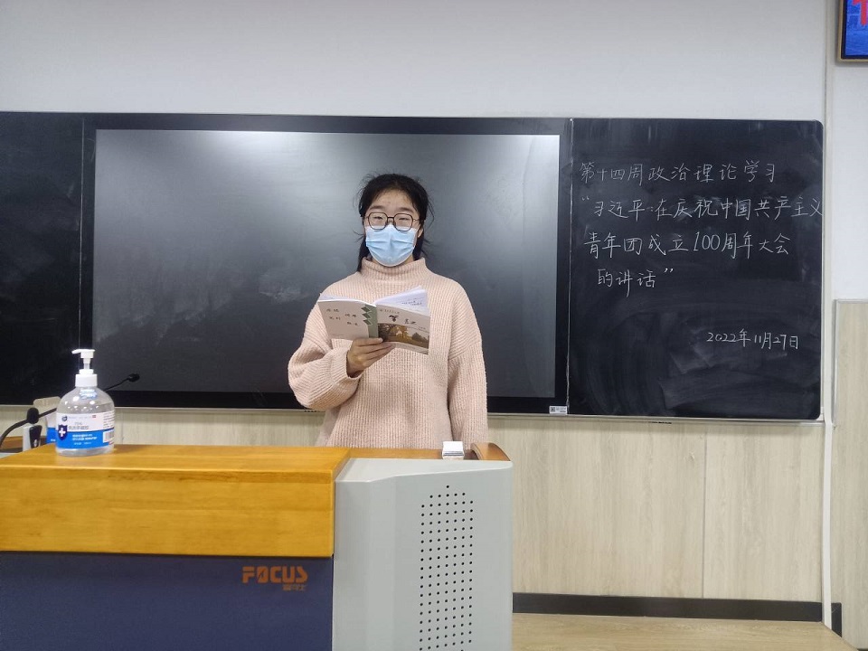 本次政治理论学习内容为习近平在庆祝中国共产主义青年团成立100周年大会上的讲话。各班团支书带领同学们全文学习习近平总书记的讲话内容,明确青年命运与时代紧密相连的核心,以及对青年提出的四点希望。结合习近平总书记的讲话,同学们一起探讨如何提升自我以更好的为国家发展献言献策。并向同学们发出倡议,希望在接下来的生活和学习中能够脚踏实地、艰苦奋斗、全面发展,为祖国建设贡献青春,推动中华民族勇毅前行。