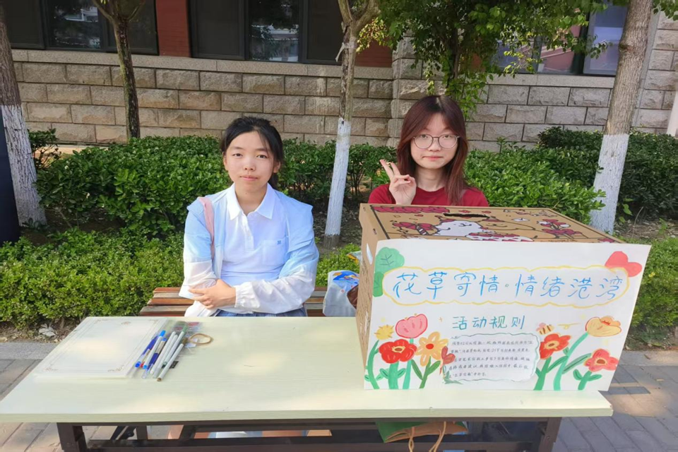 活动现场,同学们可通过两种方式参与互动:一是在纸条上匿名书写自己的情绪并投入瓶中,实现自我倾诉;二是领取他人的花草瓶并写下暖心祝福,传递朋辈关怀。
