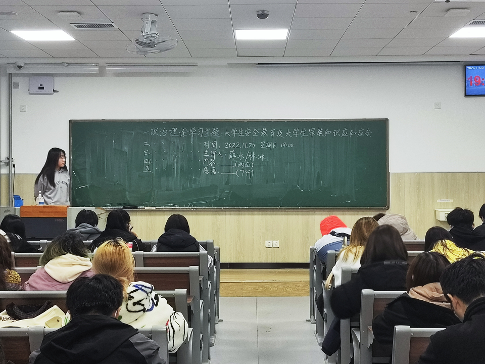 为提高安全意识,保证老员工的健康成长,11月20日,ladbrokes立博于教学区开展“老员工安全教育及老员工宗教知识应知应会”政治理论学习。本次学习由各班团支书主持,21级、22级全体同学分别于城阳校区、平度校区参加。