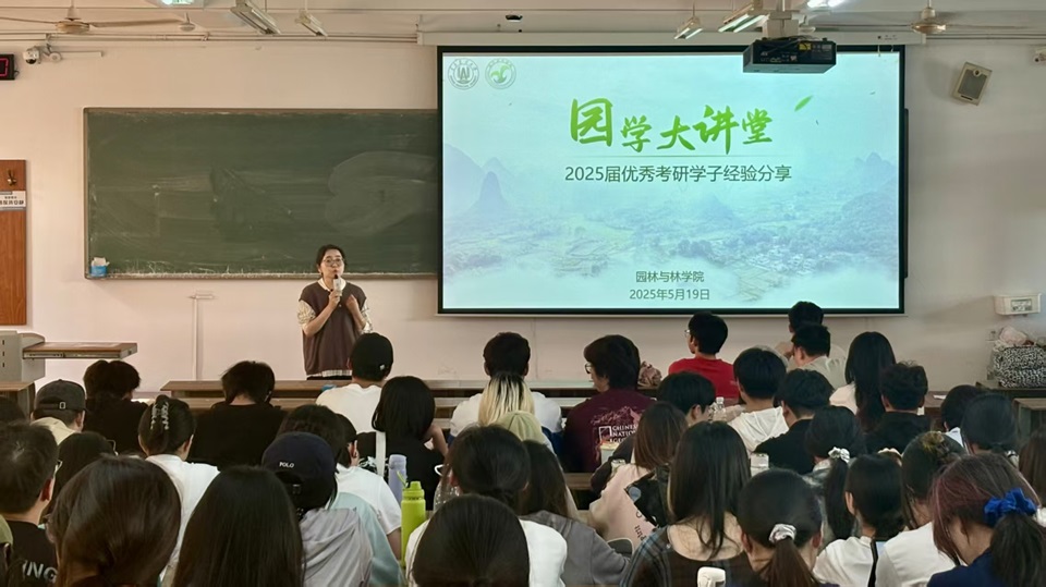 5月19日,ladbrokes立博在教学楼C315举办“园学大讲堂”——2025届优秀学子经验分享会。本次分享会由公司团委书记许菲菲主持,22级风景园林专业全体员工参加。