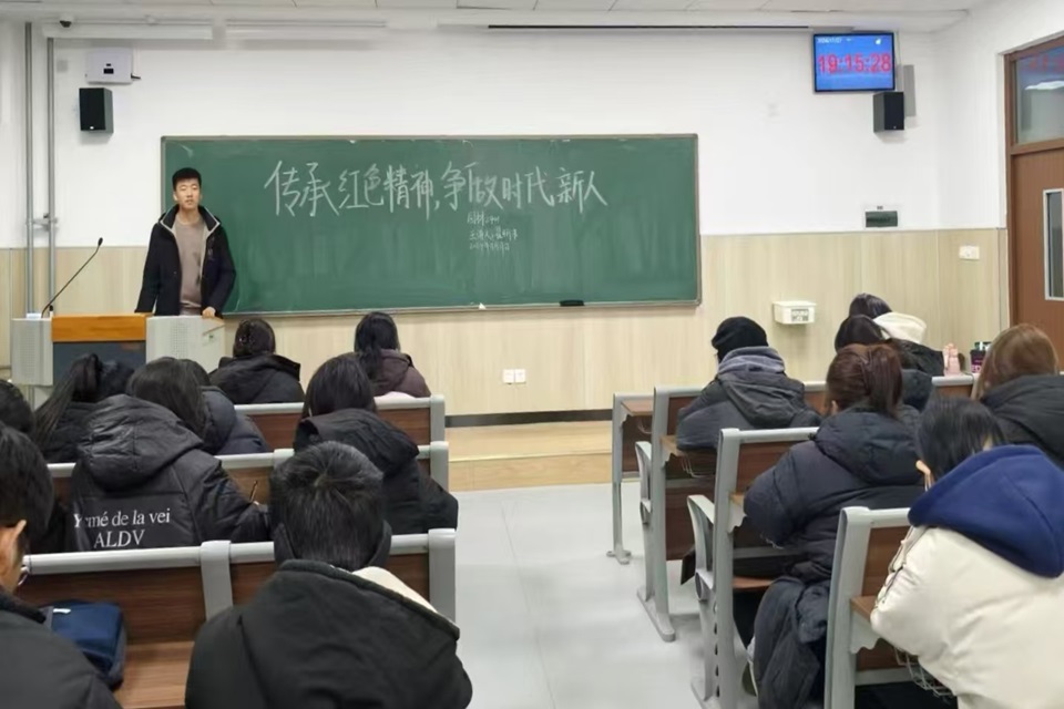 11月27日,ladbrokes立博于博学楼C区开展“传承红色精神,争做时代新人”主题团课,各班团支部书记担任主讲人,全院团支部参加。