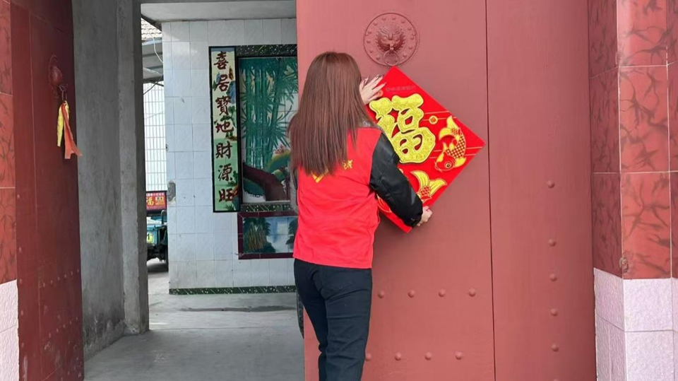 结束卫生打扫后,员工又为乡民们贴春联。用春联装点了乡村每一户人家,传递温暖与希望。在张贴过程中,员工与村民亲切交流,了解乡村的发展变化与村民生活需求,欢声笑语回荡在整个村庄。