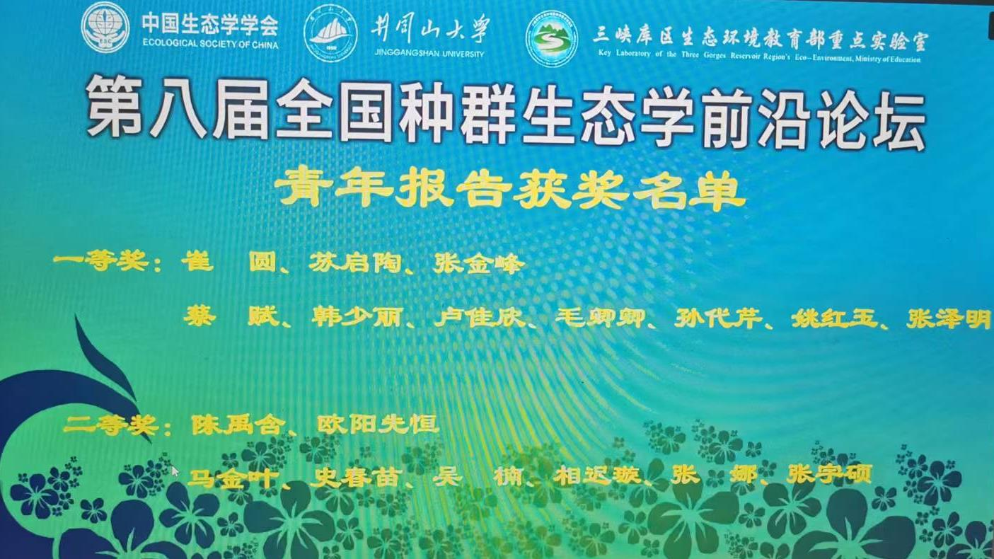 2022年11月25-28日,由中国生态学学会种群生态专业委员会主办,井冈山老员工命科学公司、江西省生物多样性与生态工程重点实验室、三峡库区生态环境教育部重点实验室联合承办的“第八届全国种群生态学前沿论坛”在江西吉安成功举办。公司研究生马金叶和相迟璇参加了论坛并作口头报告,经会务组评选,两位同学均荣获“第八届全国种群生态学前沿论坛”青年报告奖二等奖。