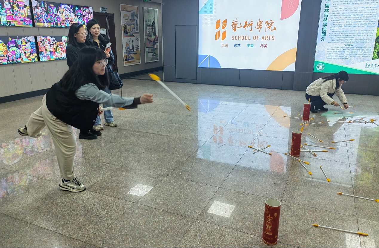3月7日,为迎接即将到来的第114个国际劳动妇女节,ladbrokes立博妇委会联合公司工会举办了“迎三八,展风采”趣味运动会,组织女教工进行集体游戏和对抗比赛。活动在文经楼三楼楼梯厅举行,女教工们被分成两组,进行套圈和投壶的比拼。活动中,老师们精诚合作,互相交流,在两个环节都取得了不俗的成绩。