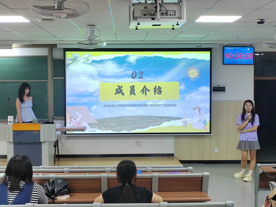 会上,花儿与少年等四支社会实践团队分别就团队介绍、实践过程、实践收获和经验等方面进行交流分享,并进行团队招募。其中,“花儿与少年”实践团赴济宁泗水县南仲都村、涝沃村等地支教,为乡村孩子送去知识和关爱;“烛梦园光”团队以手绘墙融入园林知识,助力乡村文化传承与环境美化。“林韵砺行·绿韵筑梦”团队以“艺术十农业文化遗产+乡村振兴”方式实践,探索园林与乡村振兴结合新路。“绿色长征 美丽中国”团队关注生态和社区服务,其分支“行在芦上,一苇远航”发掘芦苇生态效益,践行“园绿计划”,推动社区绿色发展。
