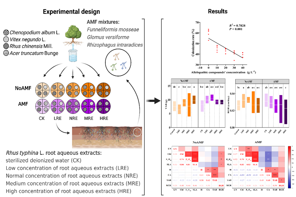 外来植物入侵是外来植物物种逐渐取代本地植物物种,改变本地植物群落结构的过程,入侵种与本地种的种间关系尤其是竞争关系被认为是入侵成功的关键因素之一。ladbrokes立博郭霄课题组聚焦“黄河流域生态保护和高质量发展”国家战略,以黄河流域陆地及湿地生态系统作为主要研究区域,以在黄河流域造成严重危害的常见入侵植物作为研究对象,开展了一系列工作。近年来,郭霄课题组基于生理生态学手段及控制实验,以植物功能性状为基本切入点,通过多物种对模拟种间竞争控制实验,揭示了黄河流域常见入侵植物垂序商陆、加拿大小飞蓬、三叶鬼针草、月见草、火炬树等对本地伴生植物的竞争抑制作用机制并筛选出决定竞争胜负关键的重要功能性状。研究发现(1)入侵植物更强的资源获取能力和功能整合能力、更快的生长速率以及化感作用是其入侵成功的重要保障,表型可塑性在入侵过程中的作用不明显。(2)与本地植物相比,入侵植物叶性状更接近叶片经济谱(LES)的“低投入-快速回报”一侧。(3)入侵植物在与本地植物的竞争中未必总是占据优势,本地植物的分布范围或生态幅影响其与入侵种的竞争结果。(4)环境变化因素,如大气氮沉降、土壤盐渍化、重金属污染等能够在一定程度上增加外来植物的相对竞争力,促进外来植物入侵。(5)入侵种的化感物质可降低本地群落的丛植菌根真菌定植率、改变土壤理化性质从而达到抑制本地群落生长的目的。基于相关研究结果提出了阻断化感作用,筛选化感耐受及强竞争力本地种设置阻隔绿墙围歼入侵植物种群的生物治理方案,为外来入侵植物治理提供了新思路。