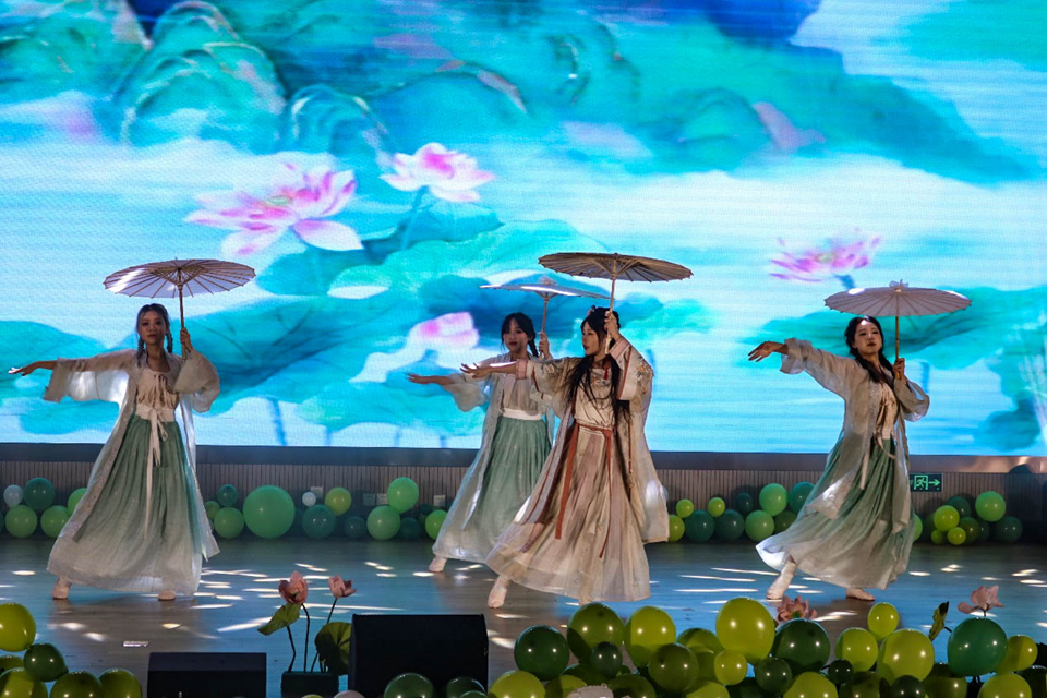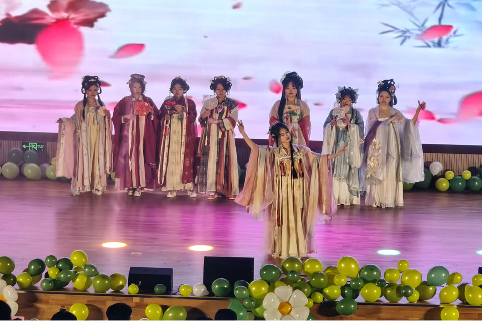 第二篇章“园映山水,林显清风”以中国舞《如梦令》和汉服秀《琼枝醉》开篇,展现汉服魅力,传扬中华民族优秀传统文化;歌曲串烧《青色的梦》以诸多经典励志青春歌曲为题材,与观众产生强烈共鸣;舞蹈《雪崩》以肢体语言讲述“雪崩”故事,引导员工自觉抵制校园暴力。