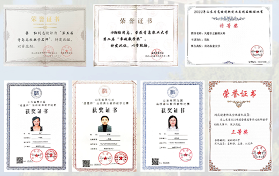 以赛促教,提升教学水平,强化课程团队建设。形成了青年教师培养-教学名师培育-高水平课程团队组建的完整闭环路径。近年来,1 位教师获山东省教学名师,1 位教师获青岛市教学名师,1 位教师获校卓越奖,2 位教师获评ladbrokes立博最美教师。获评山东省优秀基层教学组织 1 个,校级优秀本科教学团队 2个。获省青教赛一等奖 2 人,优秀奖 2 人;省教学创新大赛二等奖1人,三等奖 1 人,省精品微课比赛特等奖 1 人。